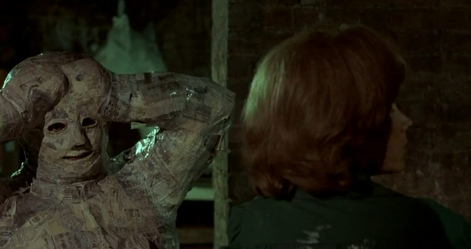 He is already half-covered when the noise starts below. Gail’s voice. The others moving through the basement, close enough now that June doesn’t stop working. She keeps her hands on him. More plaster. More paste. Smoothing, pressing, adding weight where he is already losing room to move.