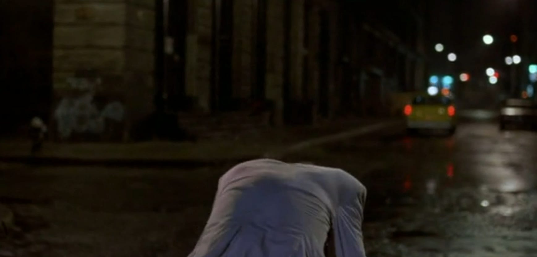 Until now, the night has been trapping Paul inside rooms, transactions, thresholds. Here it does something worse. It gives his face a public use.