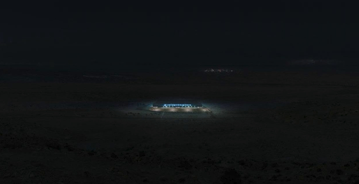 A data center rises on contested ground.