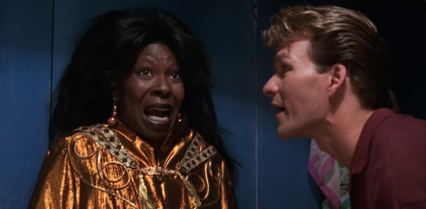 Her body turns into a conduit. Her voice into a relay. The film registers what this costs. When Sam first forces contact, the camera spins, unmoored, and Oda Mae’s terror is visible, legible, undisguised. Possession is shown as invasion before it is reframed as service.