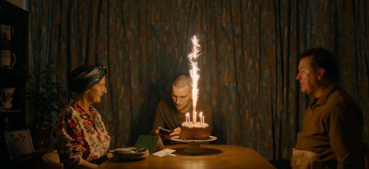 They are celebrating his birthday. A cake waits to be cut. His mother objects when he says he has to leave early. Ray has not planned anything, she insists. No one should have to rush away from their own birthday dinner.