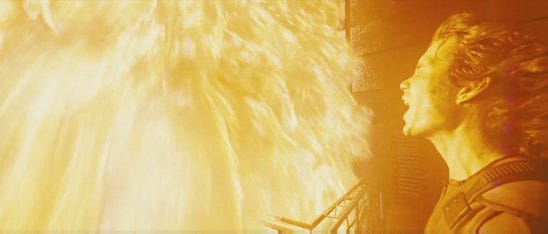 Meaning in Sunshine does not arrive through dialogue about physics or extinction. It arrives through how the image behaves under pressure. The camera insists on proximity long before the plot demands sacrifice. To look is already to risk erasure.