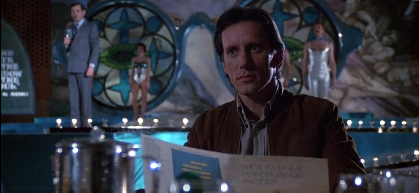 Max keeps the smirk that confuses detachment with control. He thinks he’s buying content; the content is buying his response. The minute Videodrome becomes destination, not product, he surrenders his defense.