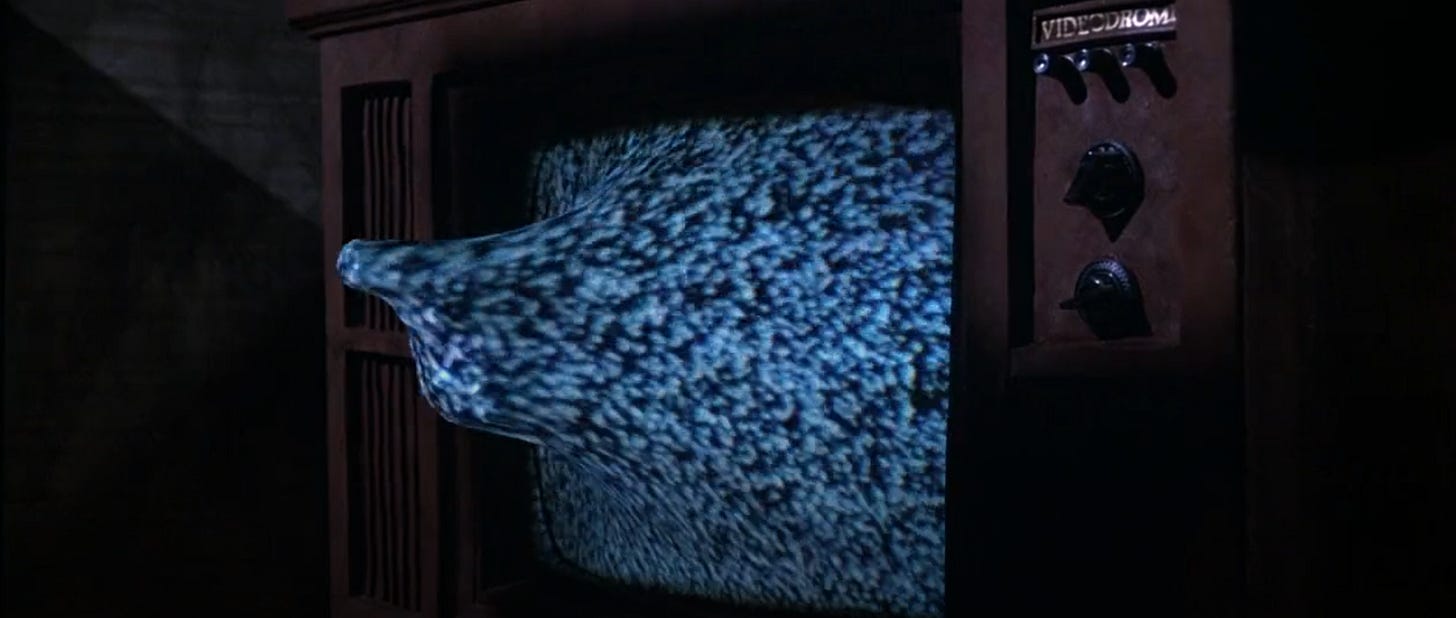 What Videodrome feared wasn’t the violence of images, it was their patience.