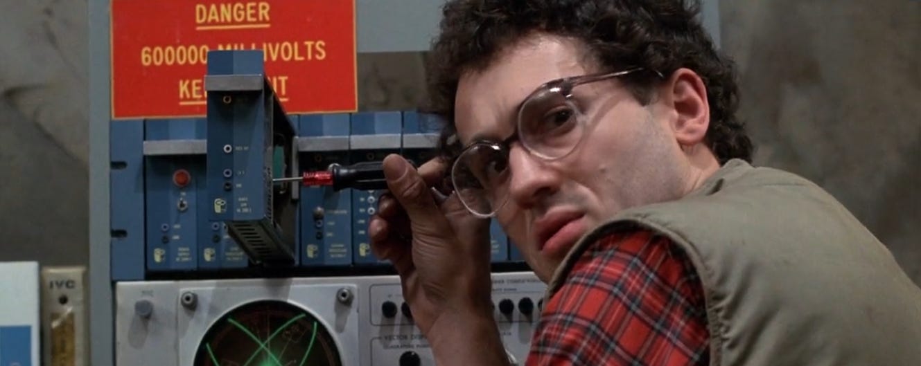 Harlan, Spectacular Optical’s obedient engineer, meets Max under fluorescent hum, the air thick with the smell of paper and solder. The walls are beige, the pipes exposed.